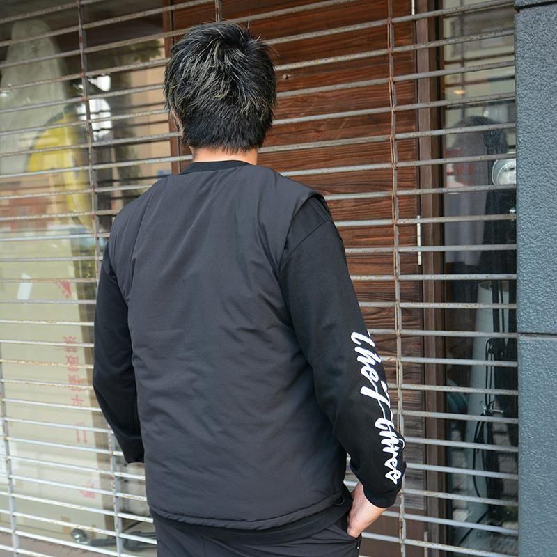 両サイドにはファスナーポケット付きで、実用性も抜群です。 アウターとしてはもちろん、ジャケットやコートのインナーにも合わせやすく、秋冬シーズンに活躍する万能アイテムです。